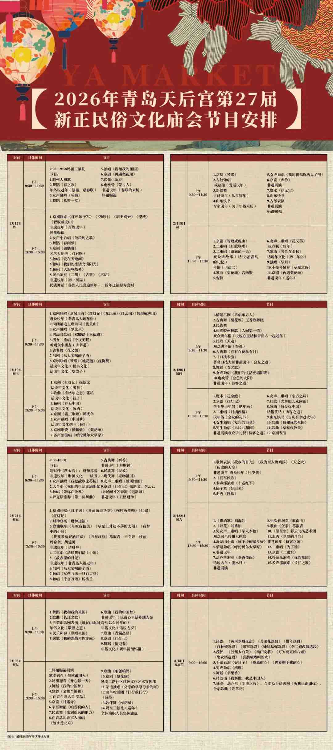 活动时间:2026年2月17日(初一)—3月3日(正月十五)