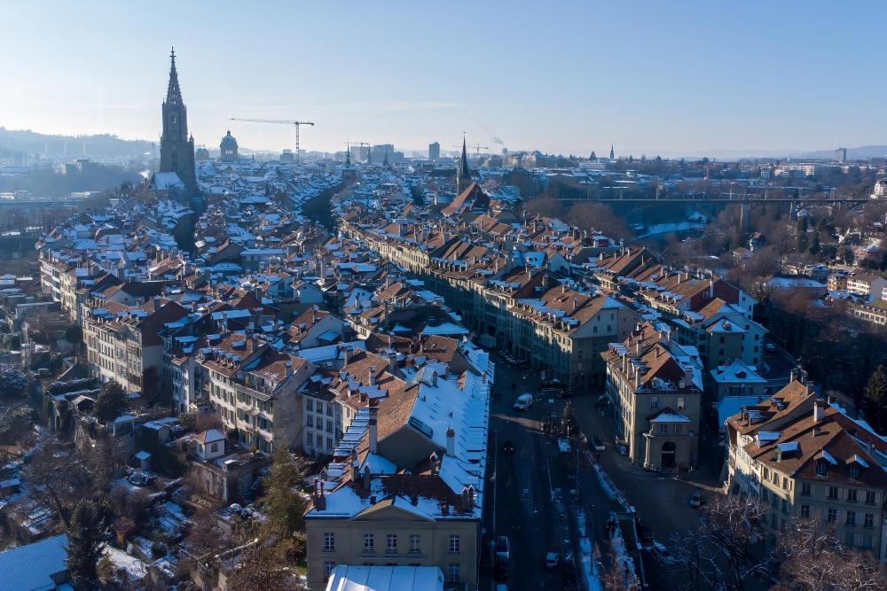 这是2024年1月20日在瑞士伯尔尼拍摄的伯尔尼老城区(无人机照片)。新华社记者 孟鼎博 摄