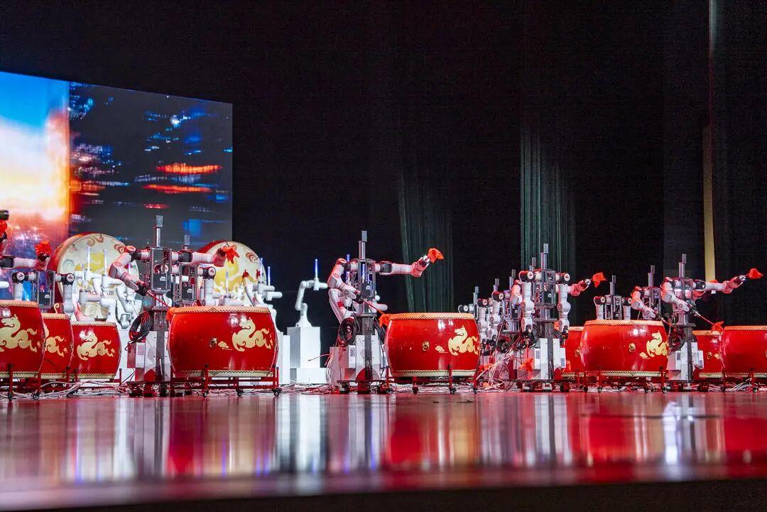 紧随其后的开场节目《万马奔腾》更添硬核气场。20条机械臂与26组双臂机器人齐挥鼓槌,激昂鼓声敲出奋进节拍。“节目融入了民族特色唢呐,中国鼓的音色中,更揉进山东本土的黄河号子。”邹鲁礼乐团团长张凯透露,最终孩子们唱响的童谣,以纯真视角勾勒对未来的憧憬,让科技表演多了份人文温度。