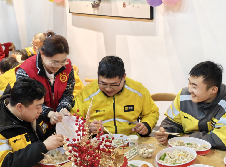 傍晚时分,暖新餐厅内灯火通明,欢声笑语不断。热腾腾的饺子宴如约开席。社区工作人员、社工志愿者与30余名就地过年的新就业群体代表围坐一堂,调馅、擀皮、包饺子,其乐融融。硬币、红枣、糖果被悄悄包进饺子里,寄托着对新年美好的期盼。来自山西的骑手张欢,已连续两年留在即墨过年了,他一边包饺子一边感慨:“虽然老家回不去,但在这里和大家一起包饺子、吃年饭,心里热乎,即墨就是第二故乡。”热气腾腾的饺子端上桌,暖的是胃,更是心。