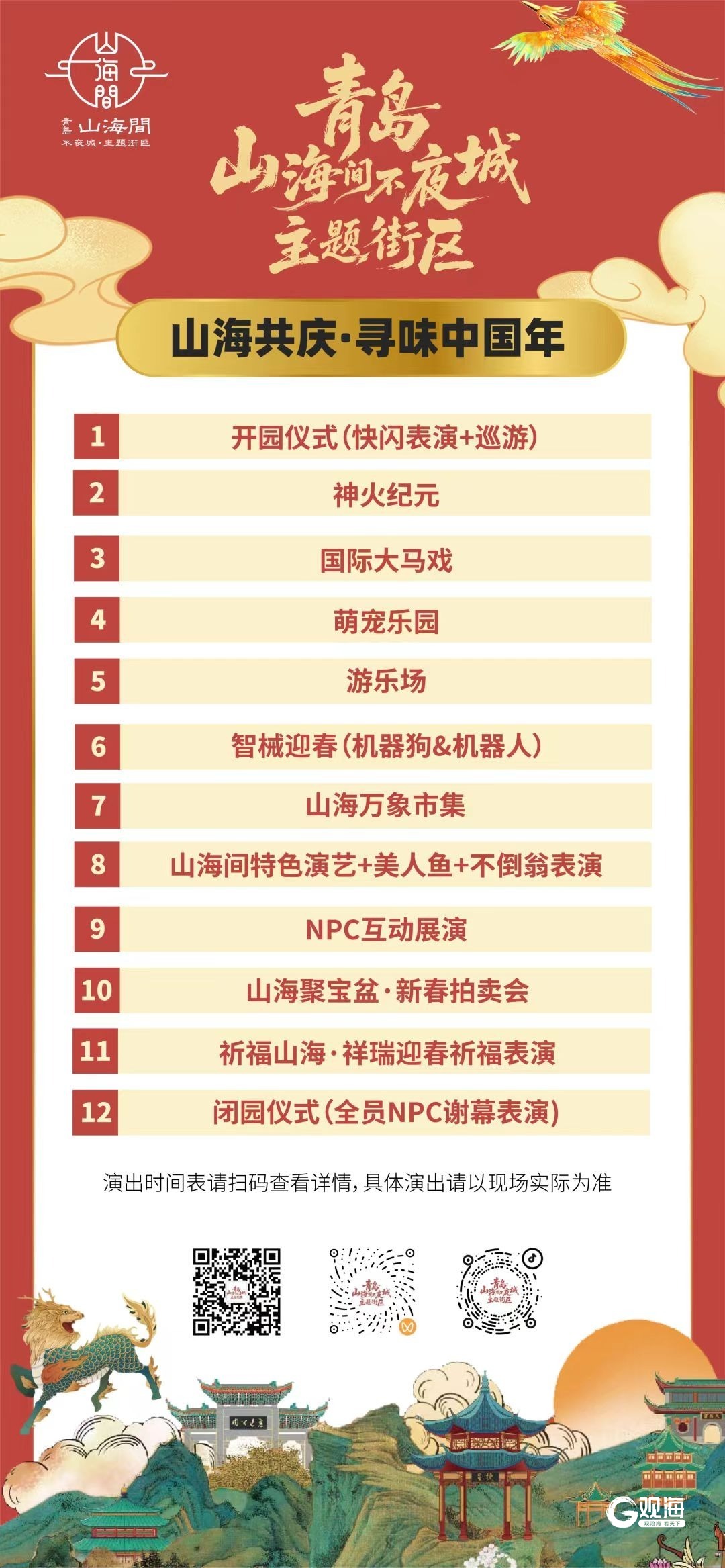 青岛日报社/观海新闻2月14日讯 春节假期期间,青岛山海间不夜城主题街区以“山海共庆·寻味中国年”为主题,安排了丰富的新春主题活动,预计演出1350余场次,实现“日日有活动、夜夜有演出、处处有看点”,为市民游客打造一场沉浸式、全感官、强互动的山海年味盛宴。