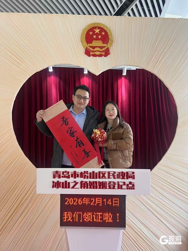 青岛日报社/观海新闻2月14日讯 2026年2月14日,农历腊月二十七,是乙巳蛇年和春节假期前的最后一个工作日。因临近春节和谐音“爱一世”,这一天成为众多新人眼中寓意美好的登记吉日。为满足广大新人喜结连理的美好愿望,青岛市民政局提前部署安排,全市各级婚姻登记机关全员在岗,以暖心服务和高效保障,全力护航这一波春节前的登记高峰,让幸福在新春佳节来临之际如期而至。