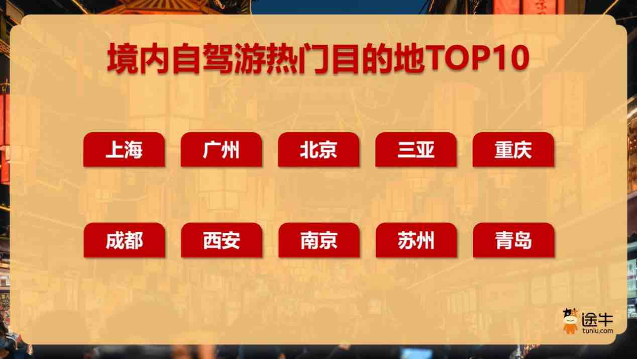 自驾游方面,上海、广州、北京、三亚、重庆、成都、西安、南京、苏州、青岛等目的地热度高涨。不少游客选择通过“短途+深度”的模式,开启乡村田园、古镇古村、温泉康养、动植物园等自驾之旅。