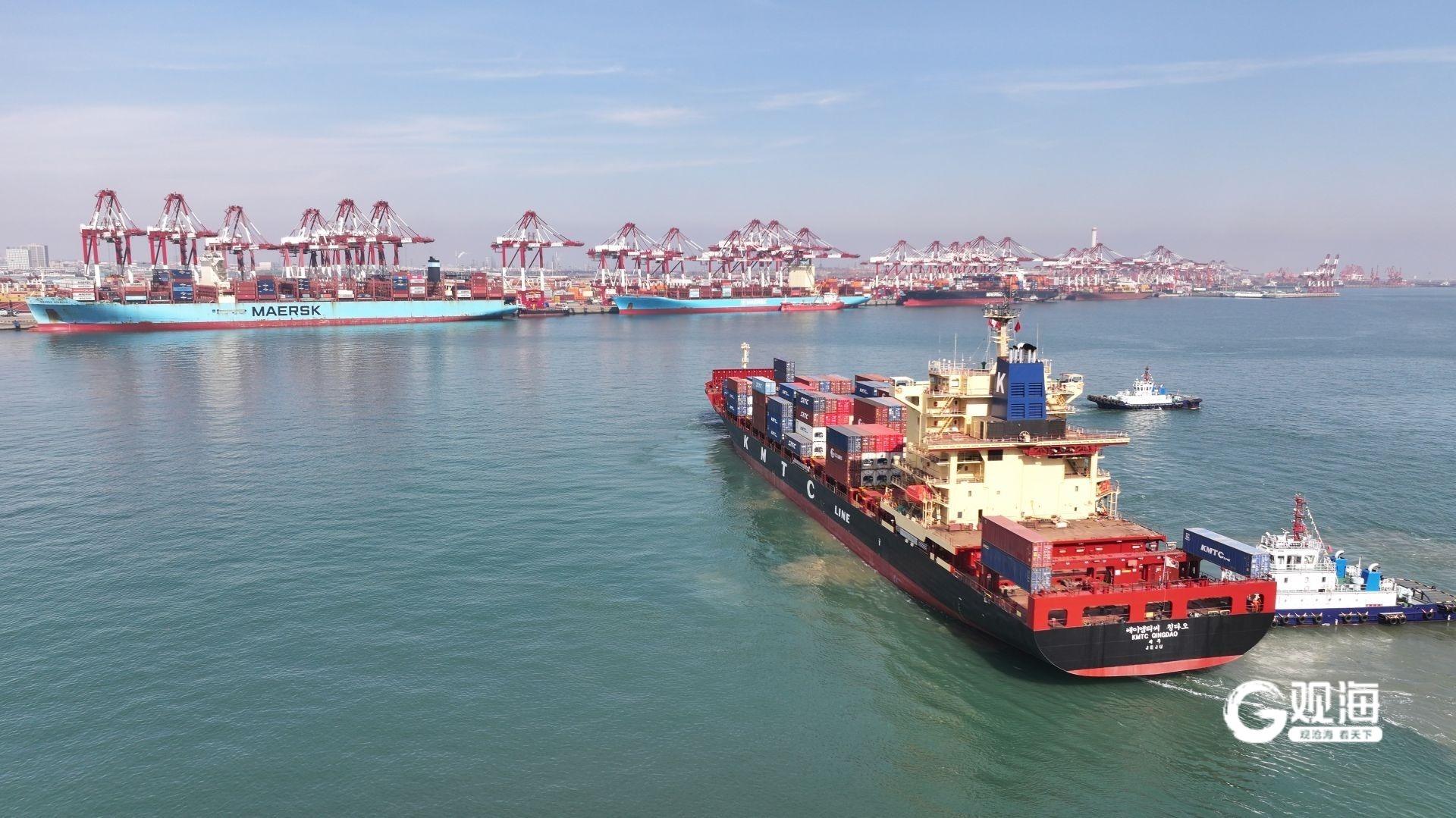 青岛日报社/观海新闻2月17日讯 大年初一,当清晨第一缕阳光洒向胶州湾畔,马年新春靠泊山东港口青岛港的第一艘船舶“古淞马士基”轮,正在有序进行8271标准箱装卸作业。该轮装载农产品、家具等货物而来,将在青岛港装载机电设备、家电以及农产品、冷链食品等货物出口海外,拉开了青岛港春节生产的繁忙序幕。
