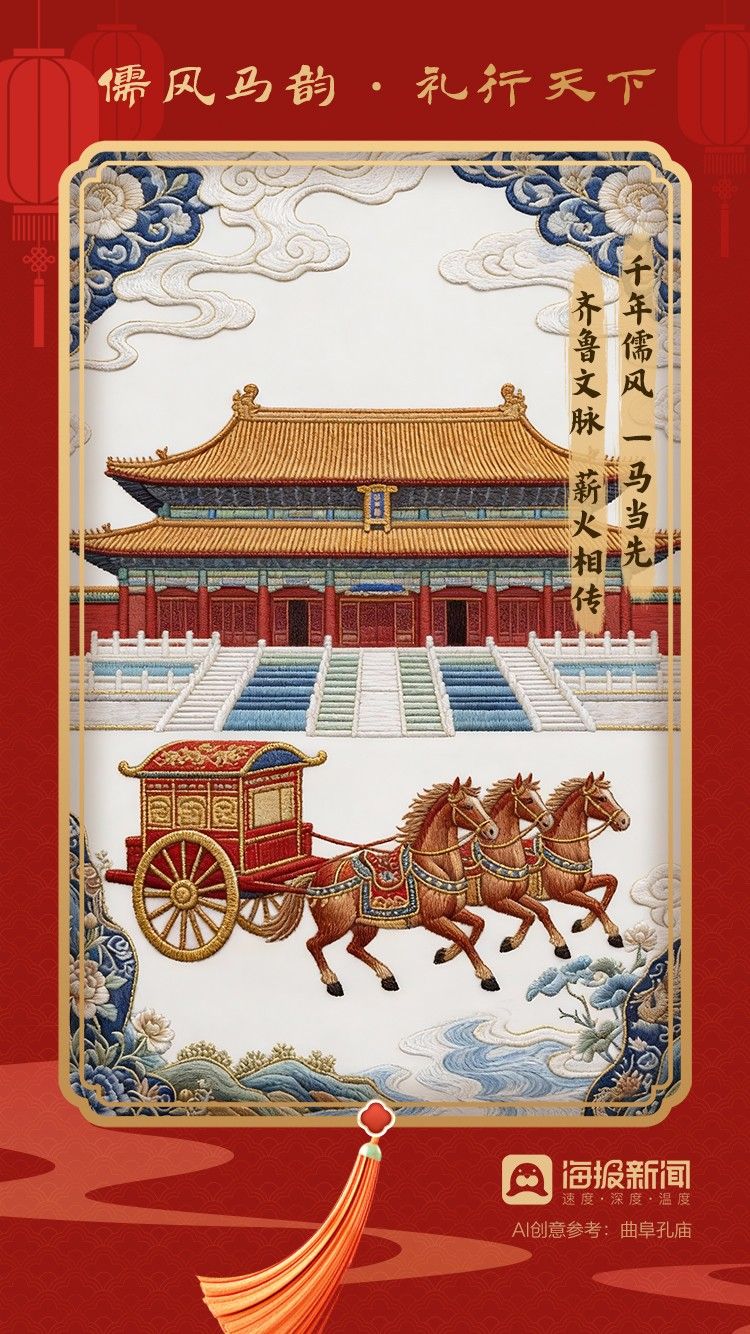 以“马”为创意纽带,融合山东孔庙儒风、泰山巍峨、黄河奔涌、文物焕彩、海洋浩瀚等元素,推出系列新春海报,尽显齐鲁文化赓续、山河锦绣、古韵新生、蓝海腾飞、乡野焕活、科创领航之盛景。