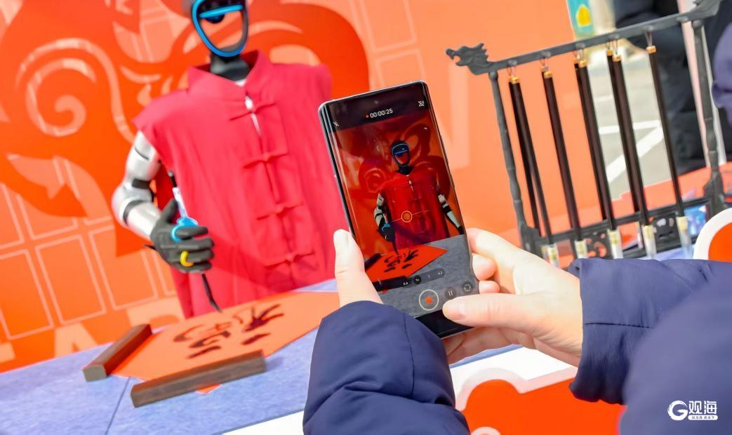 在“时尚潮流聚合区”,鲍岛风物市集与醒狮采青、嘻哈曲艺、街舞流行乐等演艺演出贯通街巷,科技感十足的AI机器人现场写福互动,传统年俗与潮流文化碰撞交融。