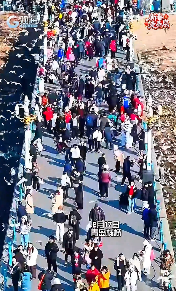 ●2月17日,大年初一,栈桥畔暖意融融,众多市民游客齐聚海边投喂海鸥。碧海蓝天间,人鸥相依,共舞成画,这独属于青岛的新春浪漫,成为节日里最动人的风景。详情>>>