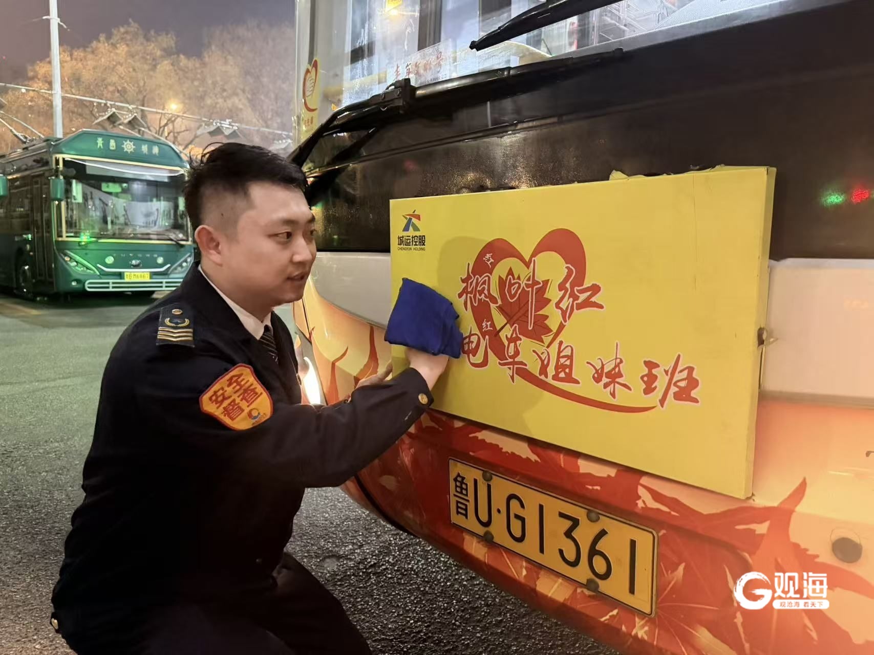 青岛日报社/观海新闻2月18日讯 除夕夜,当时钟指向22时50分,青岛城运控股公交集团市北巴士2路末班车准时驶出金坛路场站。驾驶座上,“姐妹班”驾驶员班长刘海磊目光沉稳地掠过熟悉的街景,这是他第六次在除夕夜握紧方向盘,将最后一批乘客平安送达。