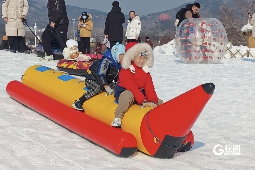 作为园区的“人气担当”,戏雪嘉年华无疑是欢乐的核心。阳光下,近万平方米的雪场银装素裹、熠熠生辉 。开阔的场地上,雪圈滑行、雪地嬉戏等活动精彩纷呈,大人小孩的欢呼声、尖叫声此起彼伏,新春氛围感直接拉满。