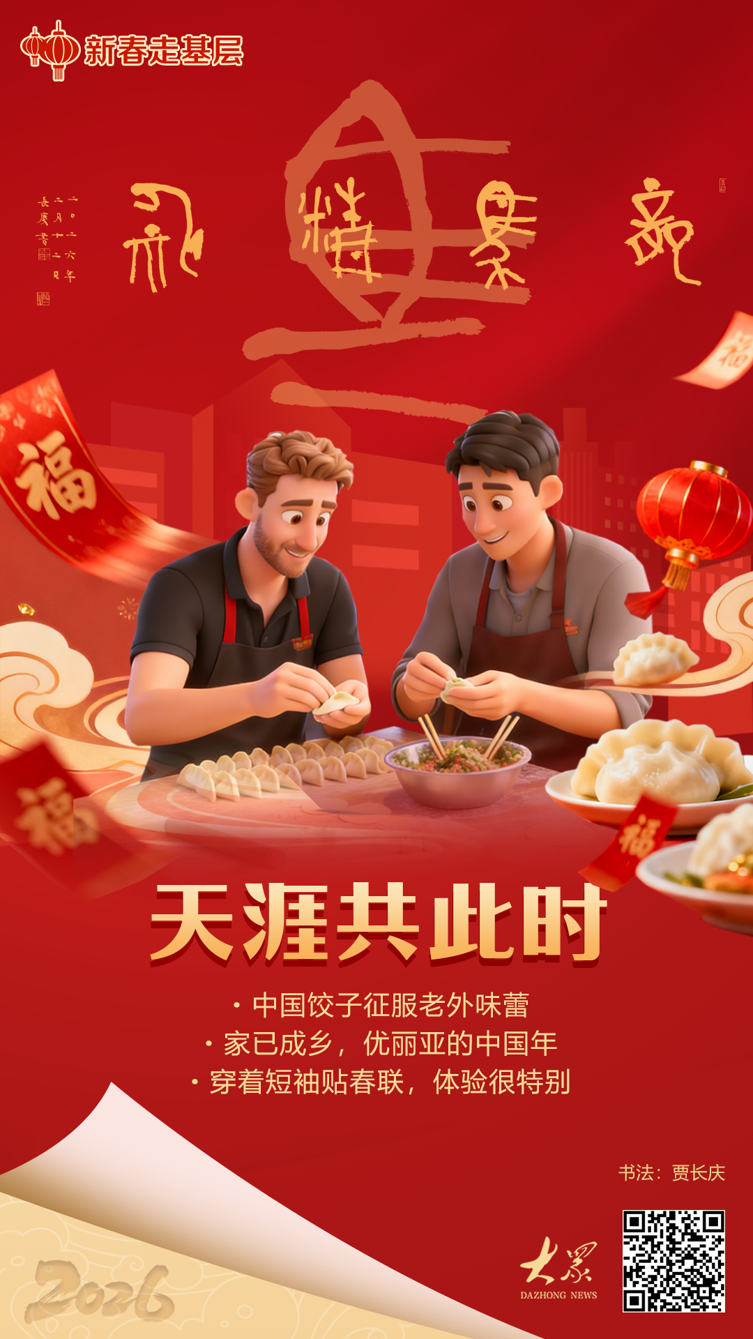 26岁的姜涵已经在海外工作了四年,这是他在异国度过的第二个春节。“2023年春节,我在孟加拉国,当时正值达卡机场高架快速路攻坚的关键时期,项目部人比较多,过年也热闹。这次人少,我们就自己创造年味。”姜涵说,“30多度的天气里穿着短袖贴对联,这份体验很特别。”。除了贴对联、包水饺,他还在住地门口画了黑板报,写上“祝大家春节快乐”,希望同事们在异国也有回家般的温暖。