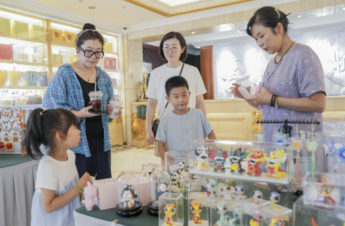 同时,这些手艺人带着自己的作品来,也带着自己的手艺来。那些平日里只能在非遗舞台、工作室、公益课堂上接触到的非遗技艺,这一次,你可以在逛商场的闲暇之余,凑近了看、上手摸。遇到感兴趣的项目,甚至可以购买一节体验课,原地坐下来慢慢学。
