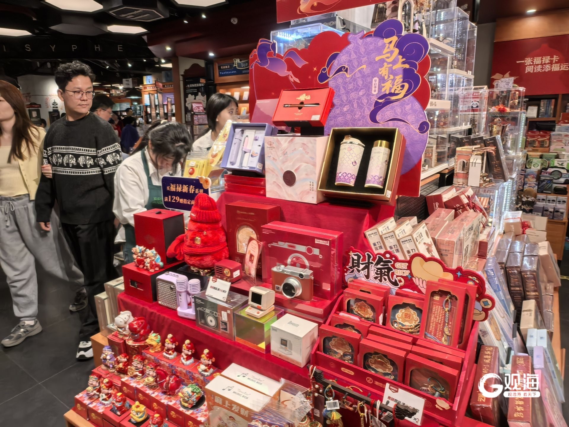 西西弗书店内,马年主题文创与红色福字将店面装点得喜气洋洋。畅销文学、社科经典、少儿读物等专区客流不断,不少市民在阅读区静静品读,享受难得的静谧。有市民表示,春节逛书店既能陪伴孩子,又能充实自己,是过节的绝佳选择。