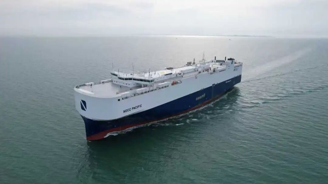 2025年11月,拥有7000个车位的液化天然气双燃料动力汽车运输船——“太平洋号”在烟台建造完工,这是我国首条符合新能源汽车海运国际新标准的汽车运输船
