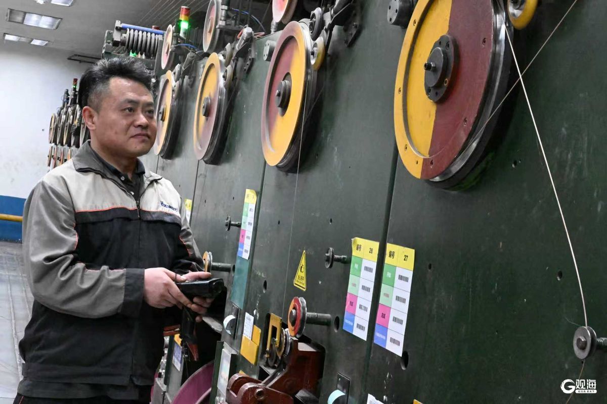 2月24日,在位于山东省青岛市即墨区数字装备产业园的青岛高丽钢线有限公司,工人在生产车间将产品信息记录在系统记录仪中。