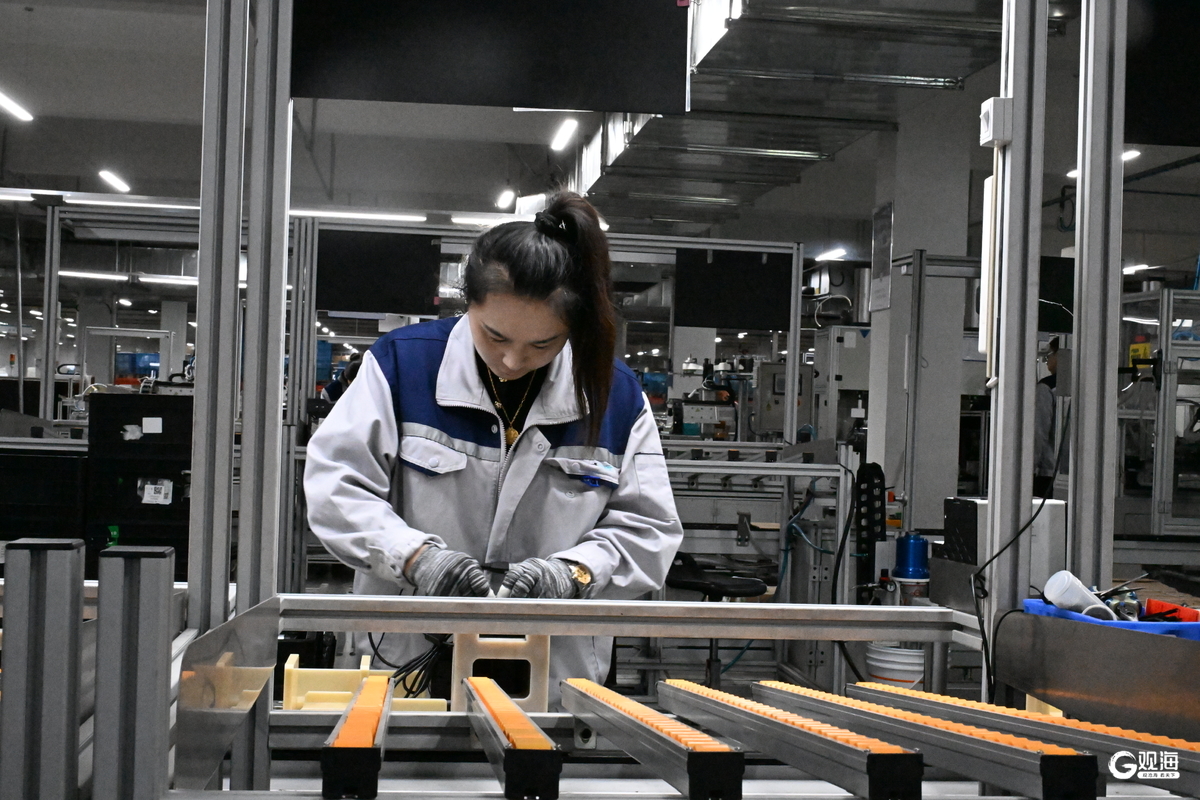 2月24日,位于山东省青岛市即墨区数字装备产业园的青岛豪江智能科技股份有限工人在生产车间内忙碌。