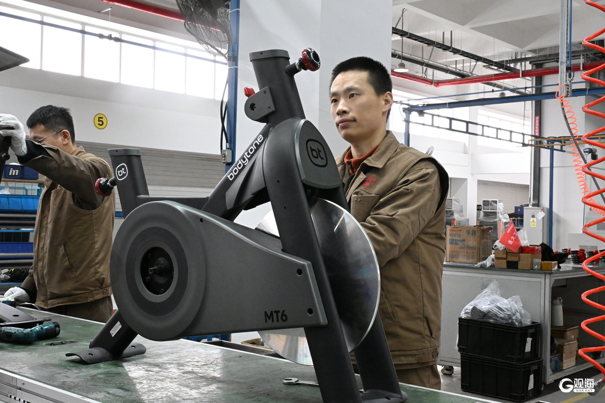 2月24日,位于山东省青岛市即墨区数字装备产业园的青岛英派斯健康科技股份有限公司的生产车间,工人在检测产品。