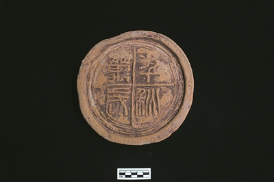 琅琊台山顶建筑基址出土西汉“千秋万岁”文字瓦当。