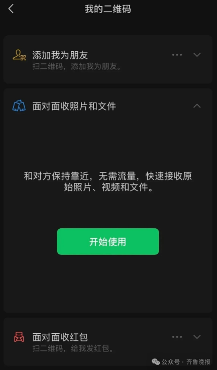 2月24日,微信员工@客村小蒋 发文称,微信最近更新“面对面收照片和文件”的功能,在“扫一扫”的“我的二维码”入口中可以体验。无需流量,不用添加好友,和对方设备保持靠近即可接收原始照片、视频和文件。