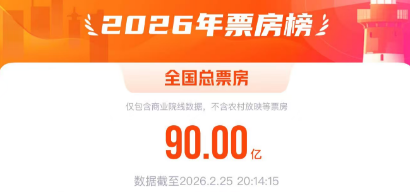 据网络平台数据,2026年年度电影总票房(含预售)突破90亿,暂列全球单一市场票房第一!