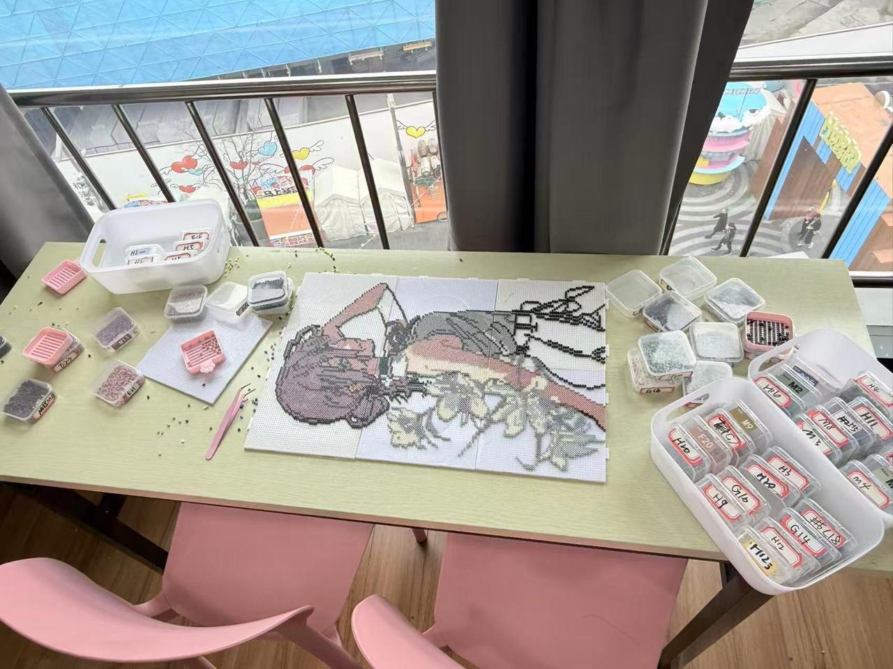 相较于其他手工项目,拼豆对店家更为“友好”。“人员成本低,一个人也能顾得过来,两个人更轻松。只要豆子备齐了,基本就能开张。”但运营的难点同样存在,豆子颜色多、品类杂,要随时检查哪些颜色缺了做到及时补充,“这是一种甜蜜的烦恼,说明生意好,但确实也挺累。”