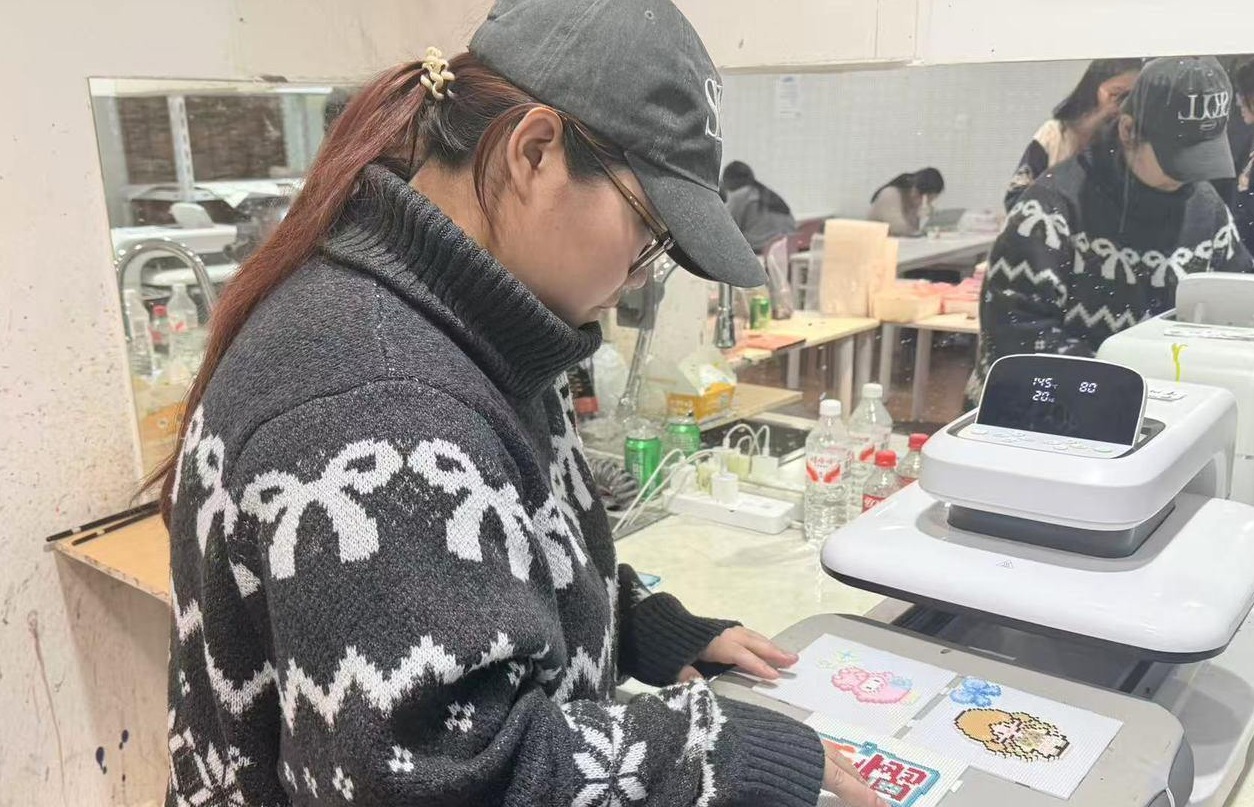拼豆需要一直坐着专注操作。“如果连着拼太久,确实有点累,但做完特别有成就感。”如今拼豆在洋洋的同学圈里挺火。她告诉记者,身边不少同学都在玩,大家会互相分享图纸、交流技巧。等烫出满意的图案,她就做成挂件挂在书包上。在她看来,这种自己动手做出来的小装饰,比买来的更有意思。