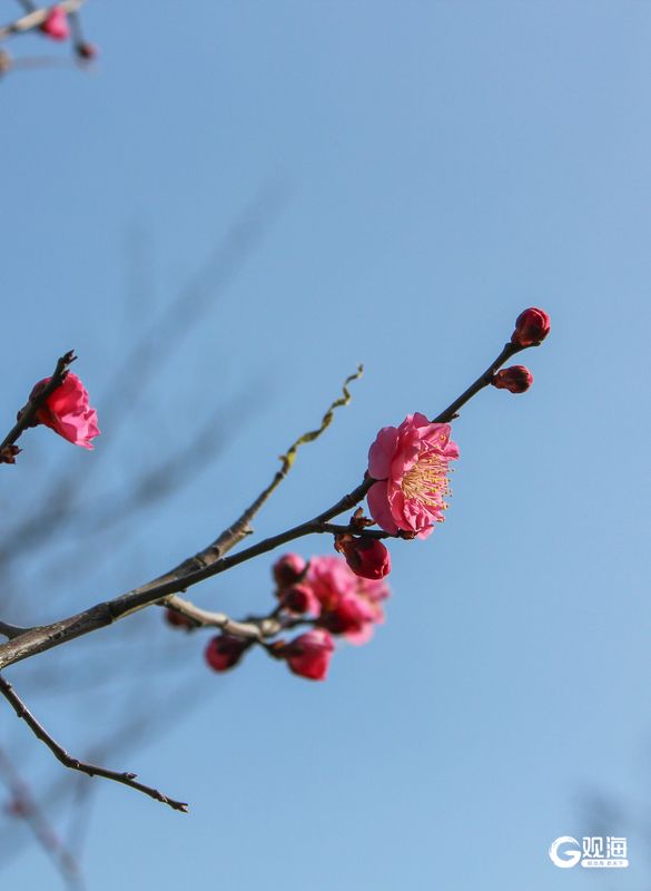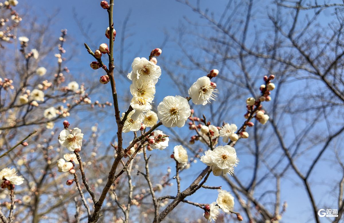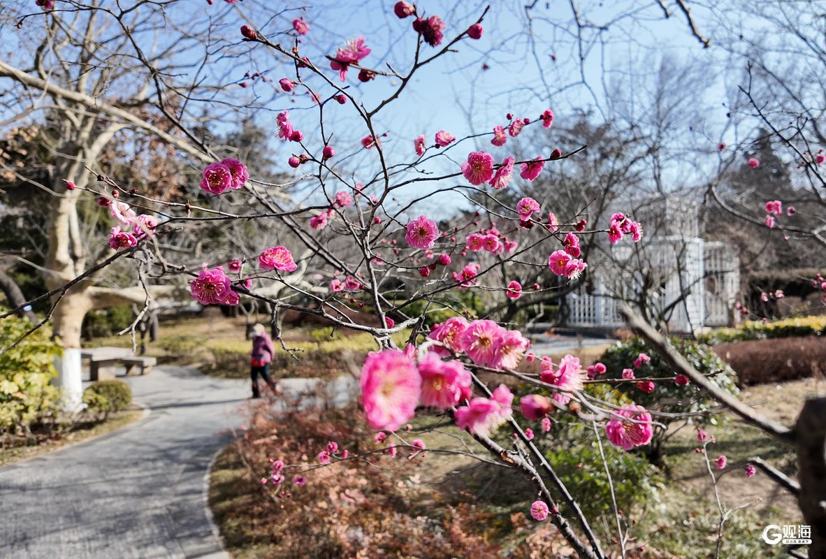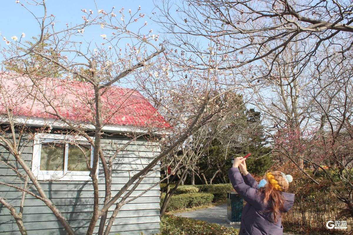 工作人员介绍,目前开放的以杏梅居多,园内还种植有宫粉梅、朱砂梅、玉碟梅、绿萼梅、美人梅、江梅、垂枝梅等多个品种,色彩丰富,形态各异。梅花主要集中在梅花园、梅花路以及牡丹亭周边,整体花期可持续一个多月,预计在3月中旬进入盛花期,届时将为市民呈现更为绚烂的春日景观。(青岛日报/观海新闻记者 刘栋 摄影报道)