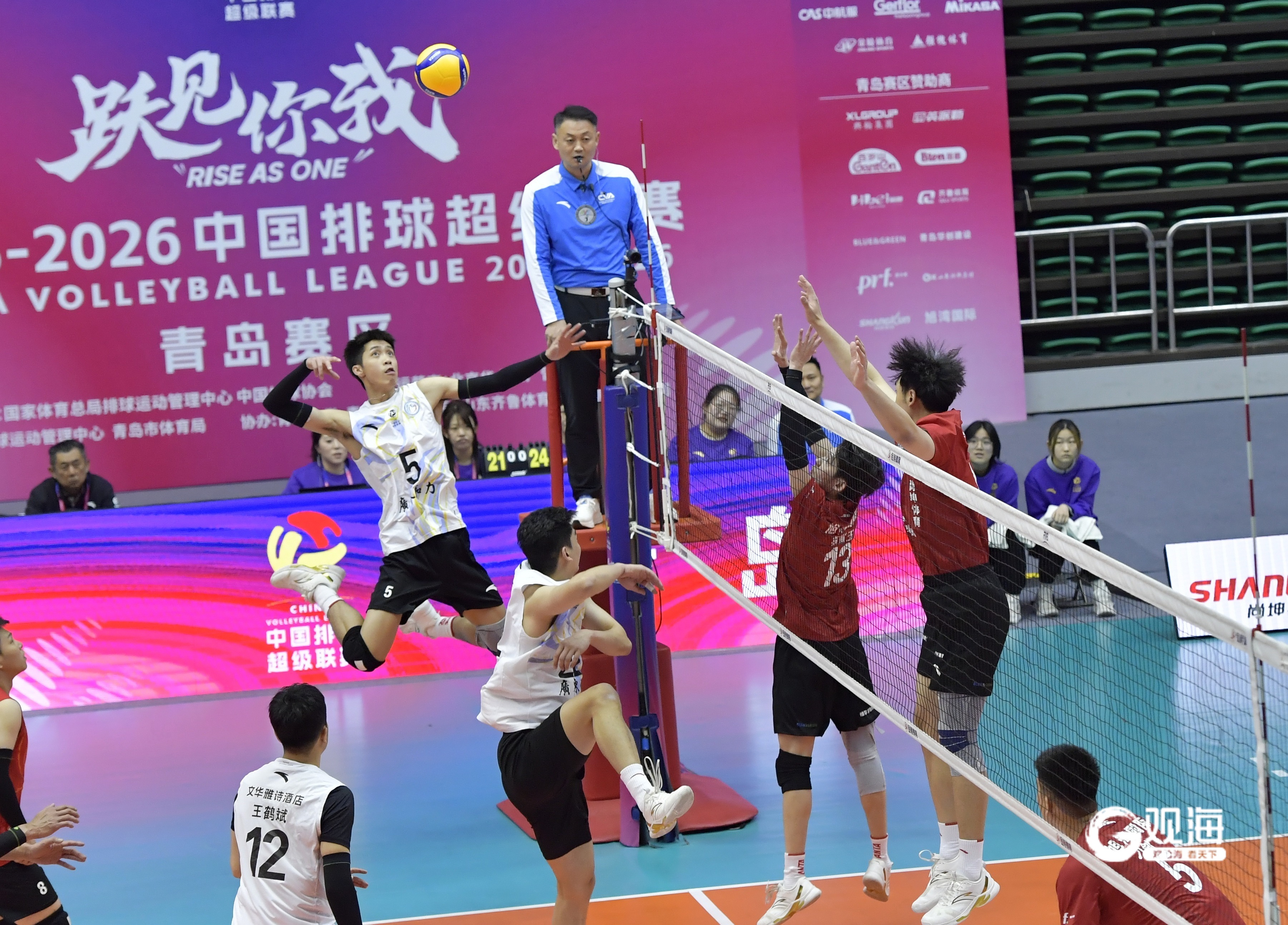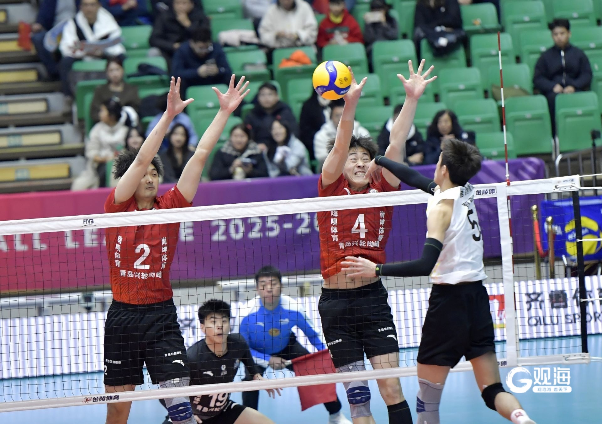 青岛日报社/观海新闻2月26日讯 今晚,2025-26赛季男子排球超级联赛季后赛正式开打。在D组的首轮比赛中,青岛兴轮呦呦男排坐镇青岛大学体育馆,3:1战胜广东台山和力队,实现开门红。