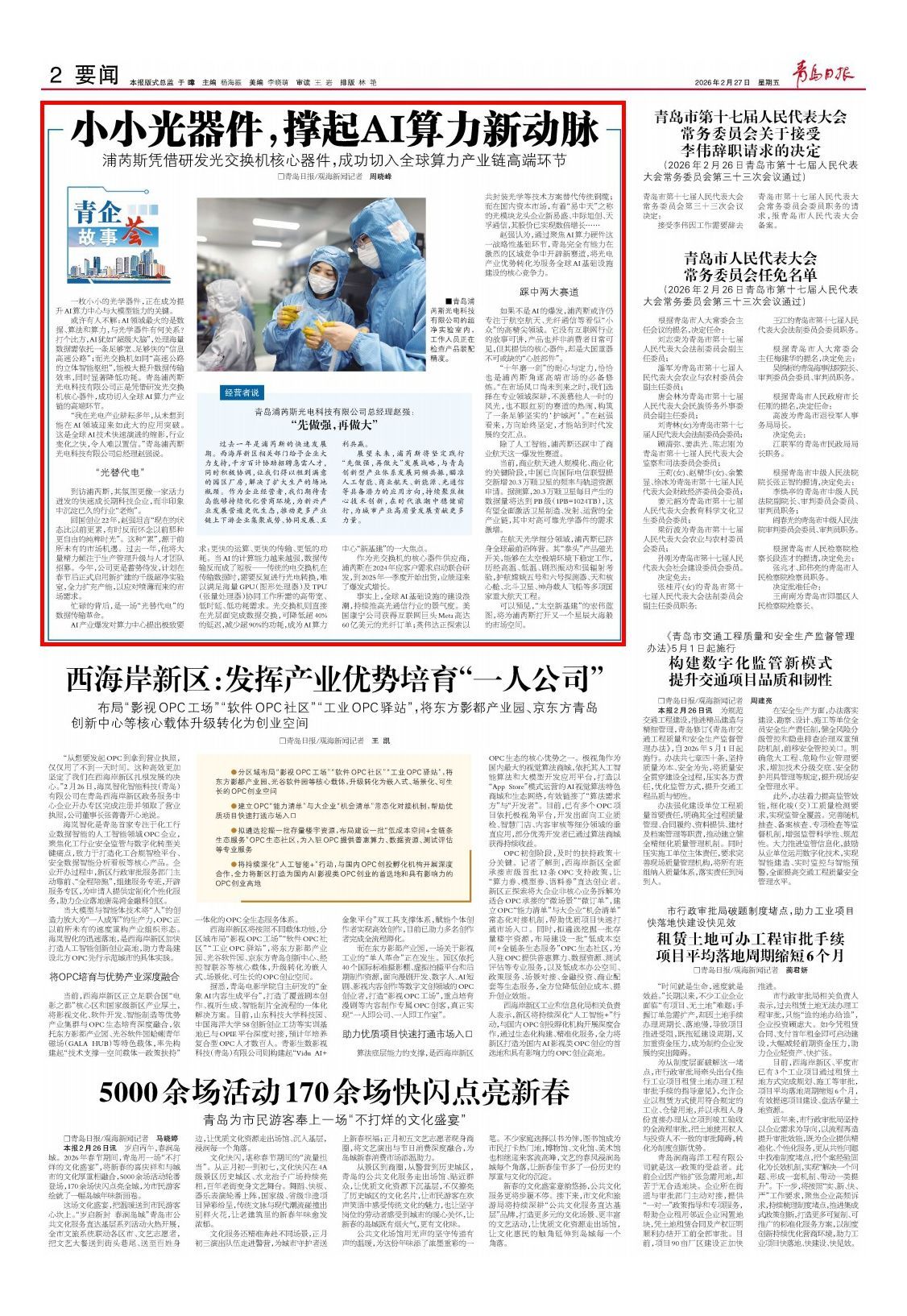 青岛日报2026年2月27日2版责任编辑:王亚楠