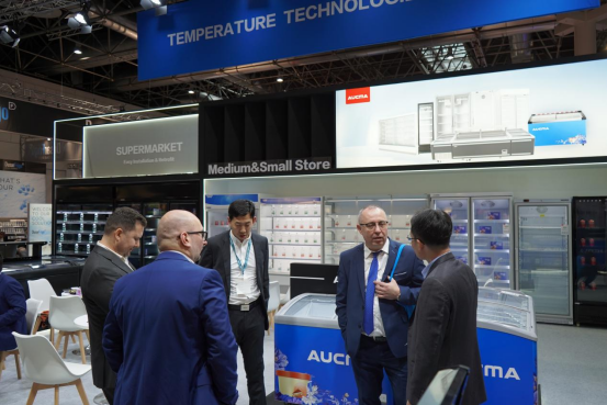 澳柯玛控股集团朱江董事长带队一行前往展会现场进行考察调研,实地查看展会布展及运营、服务等工作的开展情况,并深入了解欧洲商用冷链产品行业主流趋势、行业发展最新产品以及海外客户采购需求等。他指出澳柯玛此次参展不仅是公司产品和技术的展示,更是与欧洲及全球市场持续对话、共同探索零售未来方向的重要一步。通过对标欧洲品牌产品的设计和质量,公司要进一步把产品做得更细、更透,逐步成为全球客户值得信赖的冷链伙伴。