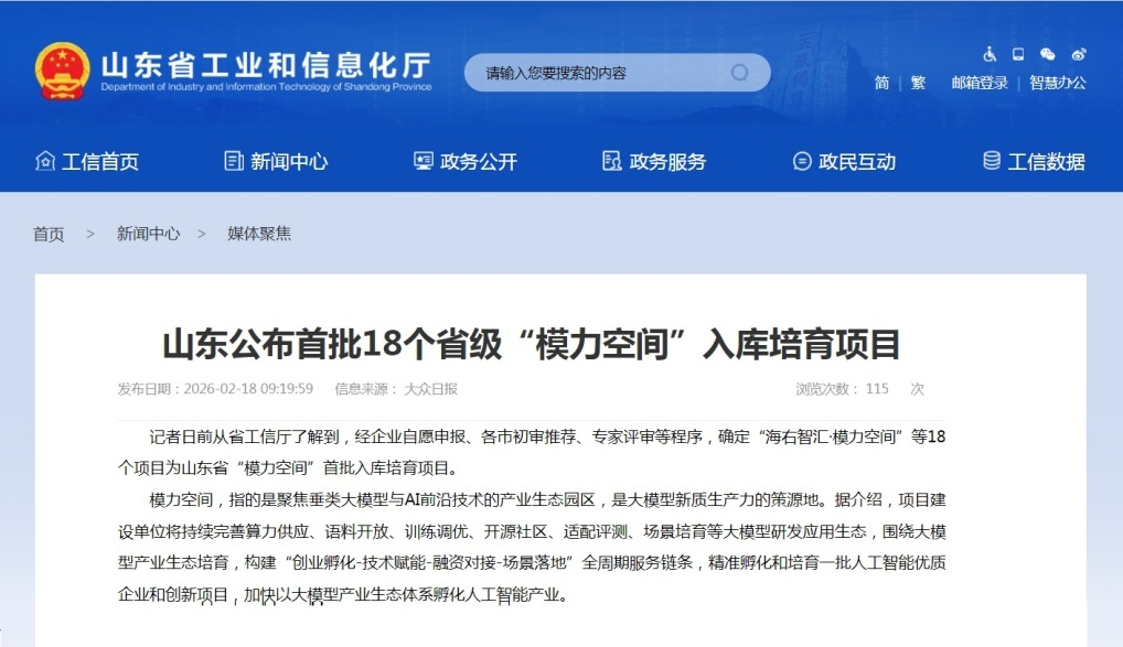青岛日报社/观海新闻2月27日讯 近日,山东省工业和信息化厅公布2025年度山东省人工智能“模力空间”首批入库培育项目名单,青岛蓝谷企业国实科技集团有限公司旗下园区公司依托国实大厦运营的海洋智谷·模力空间成功入选,是青岛蓝谷首个OPC孵化器,也是全省此次首批18个省级“模力空间”入库培育项目之一。
