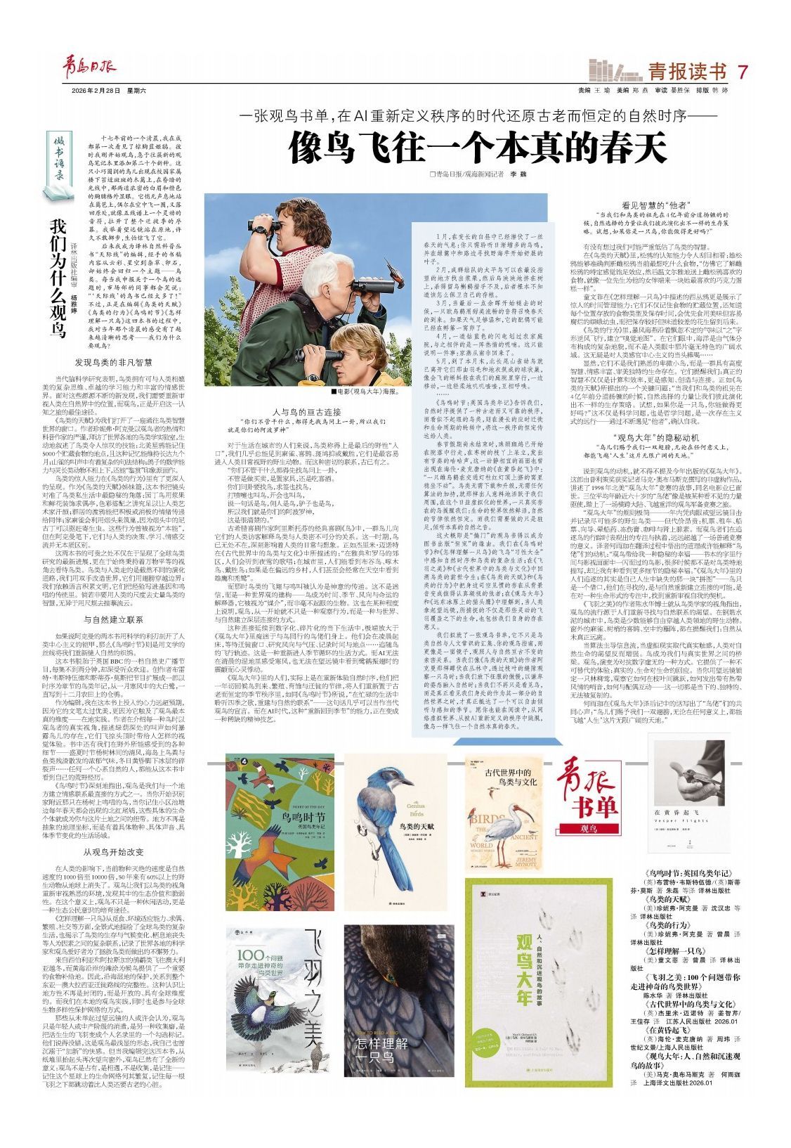 何雨珈在《观鸟大年》译后记中的话写出了“鸟佬”们的共同心声:“鸟儿们赐予我们一双翅膀,无论在任何意义上,都能飞越‘人生’这片无限广阔的天地。”(青岛日报/观海新闻记者 李魏)