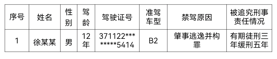 青岛日报社/观海新闻2月28日讯 近日,青岛公安交管部门公布终生禁驾人员名单,1人被终生禁驾。据了解,终生禁驾是一项严厉的行政处罚,意味着驾驶人“终生不得重新考取机动车驾驶证,终生不能驾驶机动车”。目前全国已经实现了交管信息联网,一经处罚,驾驶人信息将录入全国机动车驾驶人管理系统,被锁定为终生禁驾的驾驶人无论在省内还是省外都无法再考取驾驶证。