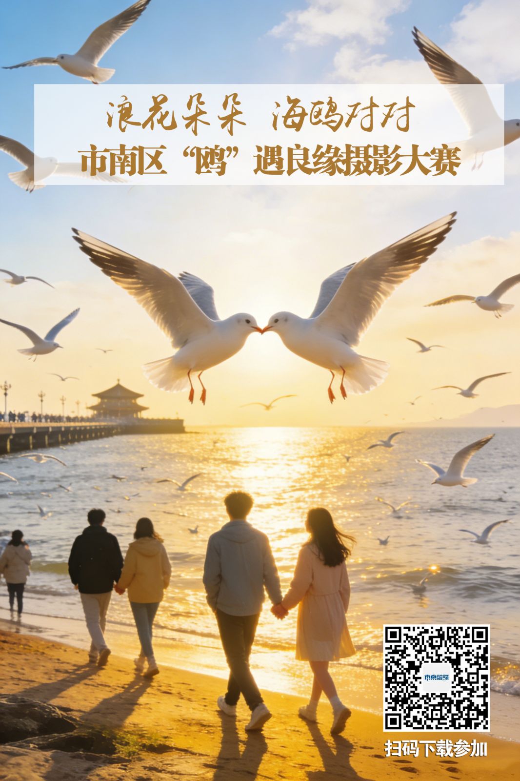 春潮漫岸,鸥影翩跹,市南区正全力深耕甜蜜经济,以滨海浪漫为底色,打造兼具生态美感与情感温度的城市名片。每到冬日至初春,成群海鸥翩然而至,在市南的海岸线上逐浪、嬉戏、依偎,上演着一场场“鸥”遇良缘的浪漫佳话,与栈桥回澜阁的古朴、五四广场的现代、奥帆中心的灵动交相辉映,浪花为媒,鸥鸣为证,勾勒出治愈又浪漫的滨海画卷。青岛市文明办、青岛市文化和旅游局指导,市南区委宣传部、市南区文明办、市南区文化和旅游局、市南区文联举办“鸥”遇良缘摄影大赛,以镜头为媒,定格海鸥相恋相伴的温情瞬间,捕捉鸥景与市南甜蜜气质的完美融合,挖掘滨海城市的生态之美、人文温情与甜蜜底蕴,让更多人邂逅市南的海岸浪漫。(青岛日报/观海新闻记者 曹森)