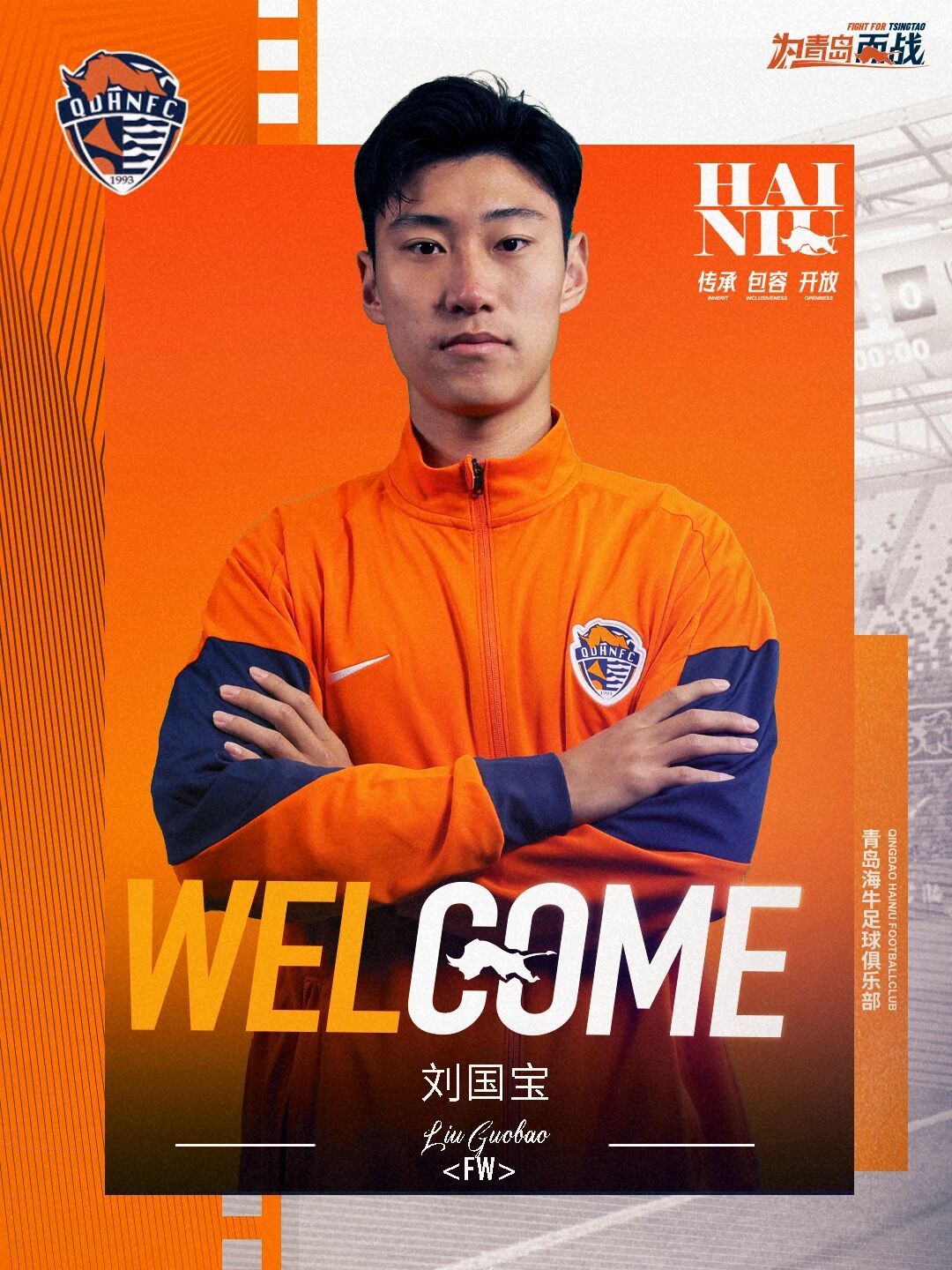 刘国宝出生于2003年4月20日,身高183cm,司职边锋,曾先后被山东泰山队租借至西安骏狼队、长春亚泰队历练,期待这名小将在海牛队期间不断成长,为球队贡献自己的力量。(青岛日报/观海新闻记者 许诺)