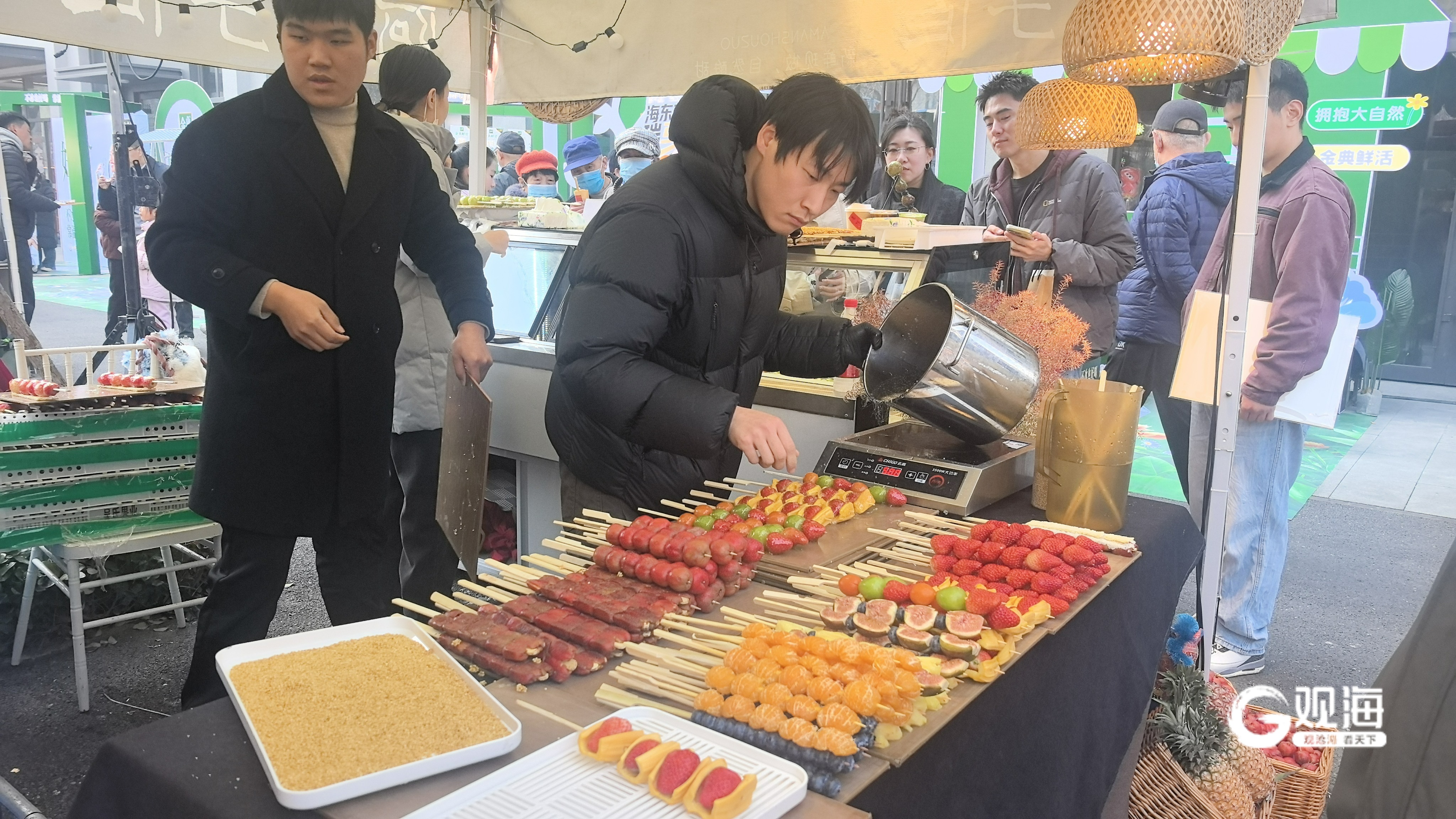 本次瑞马食集以“美食+非遗+演艺+文创”为核心,打造一站式新春消费体验。现场既有老青岛糖球、本土糕点等非遗风味坚守匠心,也有汉堡、咖啡等潮流餐饮新鲜登场,传统甜香与现代风味交织,满足不同人群的味蕾需求。现场还有不间断的音乐演出轮番上演,民谣、摇滚点燃现场氛围,为市集注入动感活力。