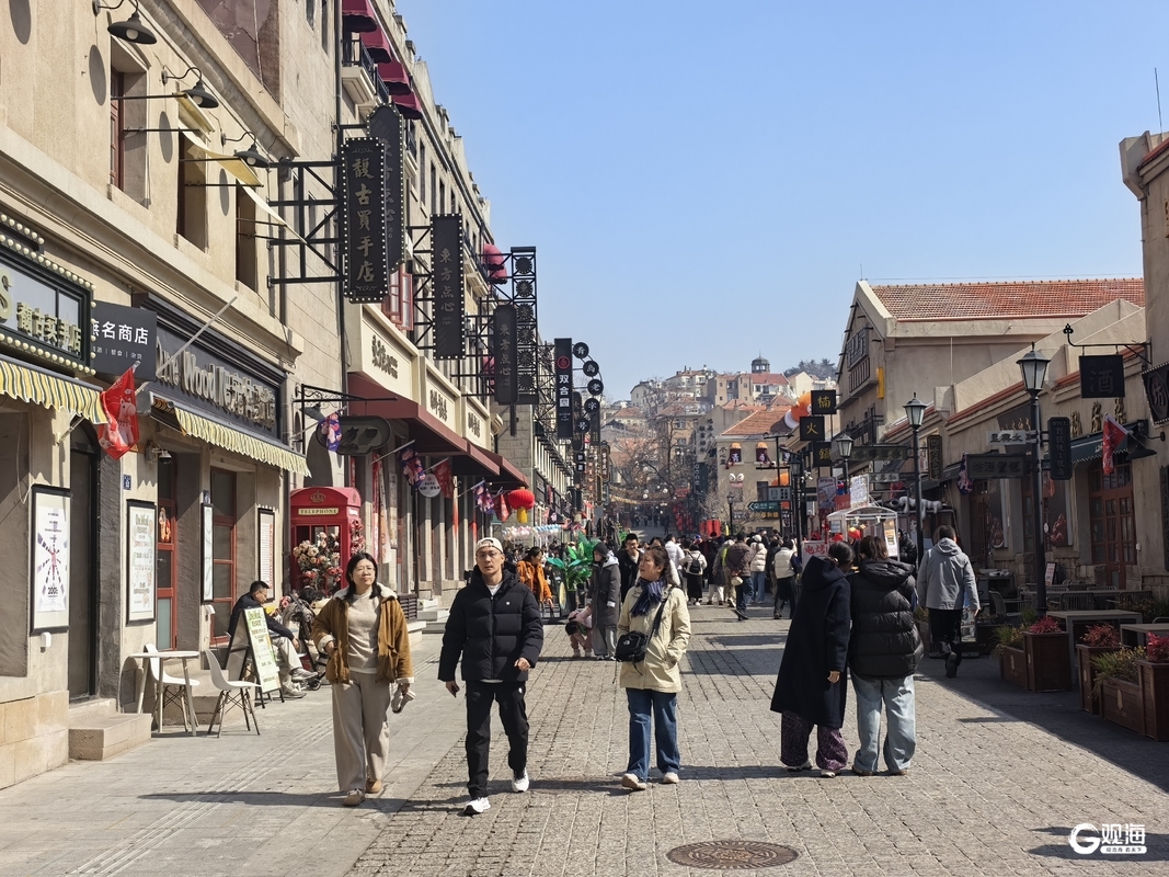 青岛日报社/观海新闻2月28日讯 春节假期后的第五天,青岛老城文化旅游区火爆势头依然不减、热闹非凡。28日上午,观海新闻记者在中山路历史街区、栈桥景区等景点看到,中山路上马年新春主题装置格外惹眼,过往游客纷纷停下脚步拍照打卡。