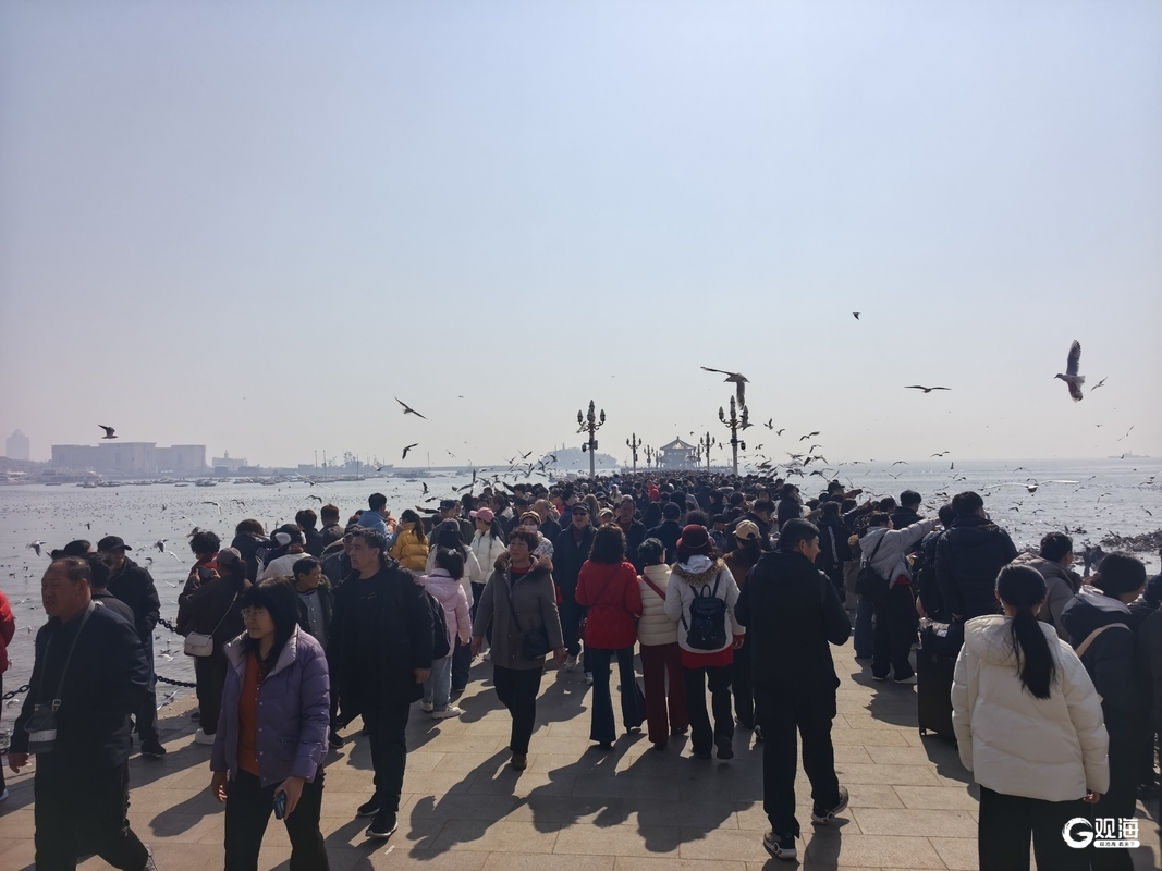 栈桥景区鸥影翩跹、游客熙攘,前海一线被来自全国各地的游客围得水泄不通,大家或在岸上赏鸥喂食,或在沙滩上近距离地和海鸥嬉戏。当海鸥成群飞过,人们纷纷举起相机拍照,定格下这份青岛独有的乐趣和美好回忆。(青岛日报/观海新闻记者 曹森 文/图)