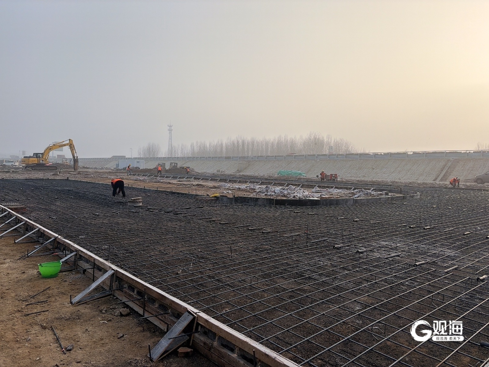 沈海高速黄岛服务区项目进行室外道路钢筋绑扎