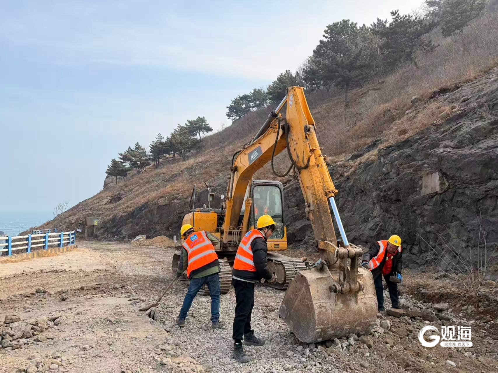 该项目主要建设内容包括:对现状环岛路进行翻建与罩面,同步实施路灯、排水、电力及通信等管线工程,对沿线建筑进行改造提升并新建游客中心,整体推进景观绿化与旧码头区域升级。目前,环岛路路面及管道沟槽割缝累计完成8000米;路灯管道施工累计完成2000米,同步进行隐蔽工程验收;道路三翻建卵石段的破碎及开挖作业正有序开展,现场机械及人员已全面铺开。
