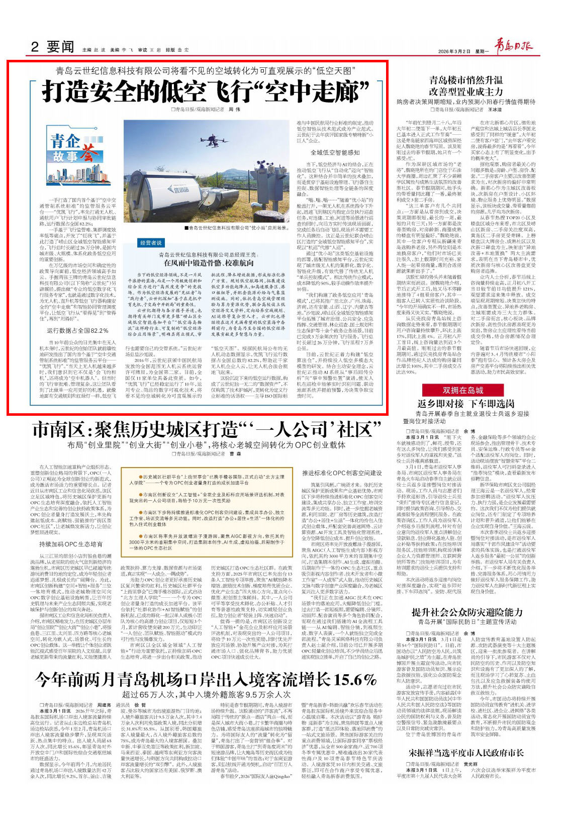 云世纪期待与各方携手并进,也期待有关部门发布更多像“崂山区全域低空智能感知平台”“低空海岛物流”这样跨行业、可复制的“低空经济综合应用场景”,明确其商业模式、审批流程、降本增效数据,形成标准化推广方案。规划低空航路网,拓展建设低空多功能起降点,如高速服务区、港口枢纽等,并配套能源补给与气象监测设施。同时,依托青岛空域管理经验与算力资源优势,联合高校设立低空经济交叉学科,定向培养空域规划、AI运维等复合型人才。云世纪也将继续在这片充满希望的低空蓝海中奋楫前行,为青岛乃至全国的低空经济发展贡献更多智慧与力量。(青岛日报/观海新闻记者 周伟)