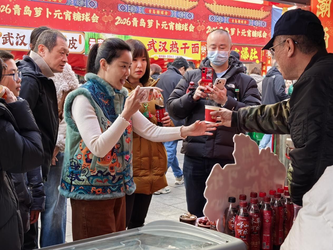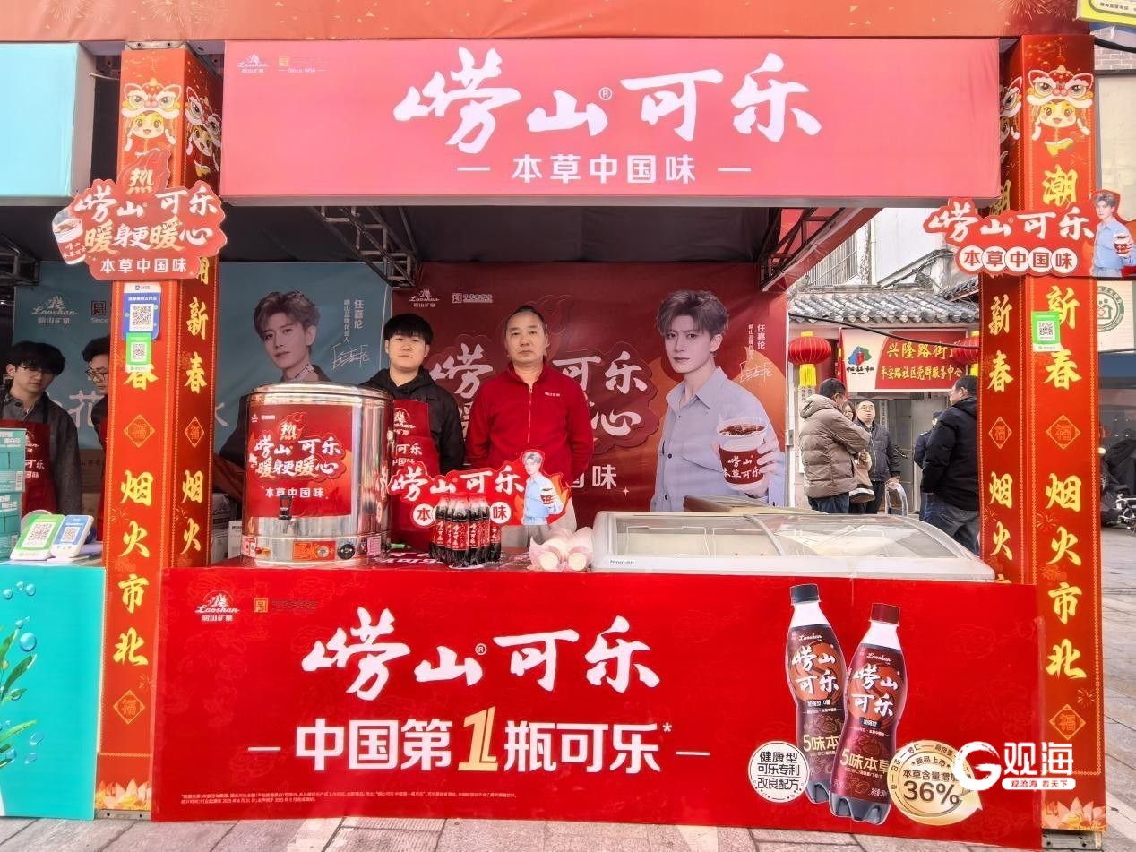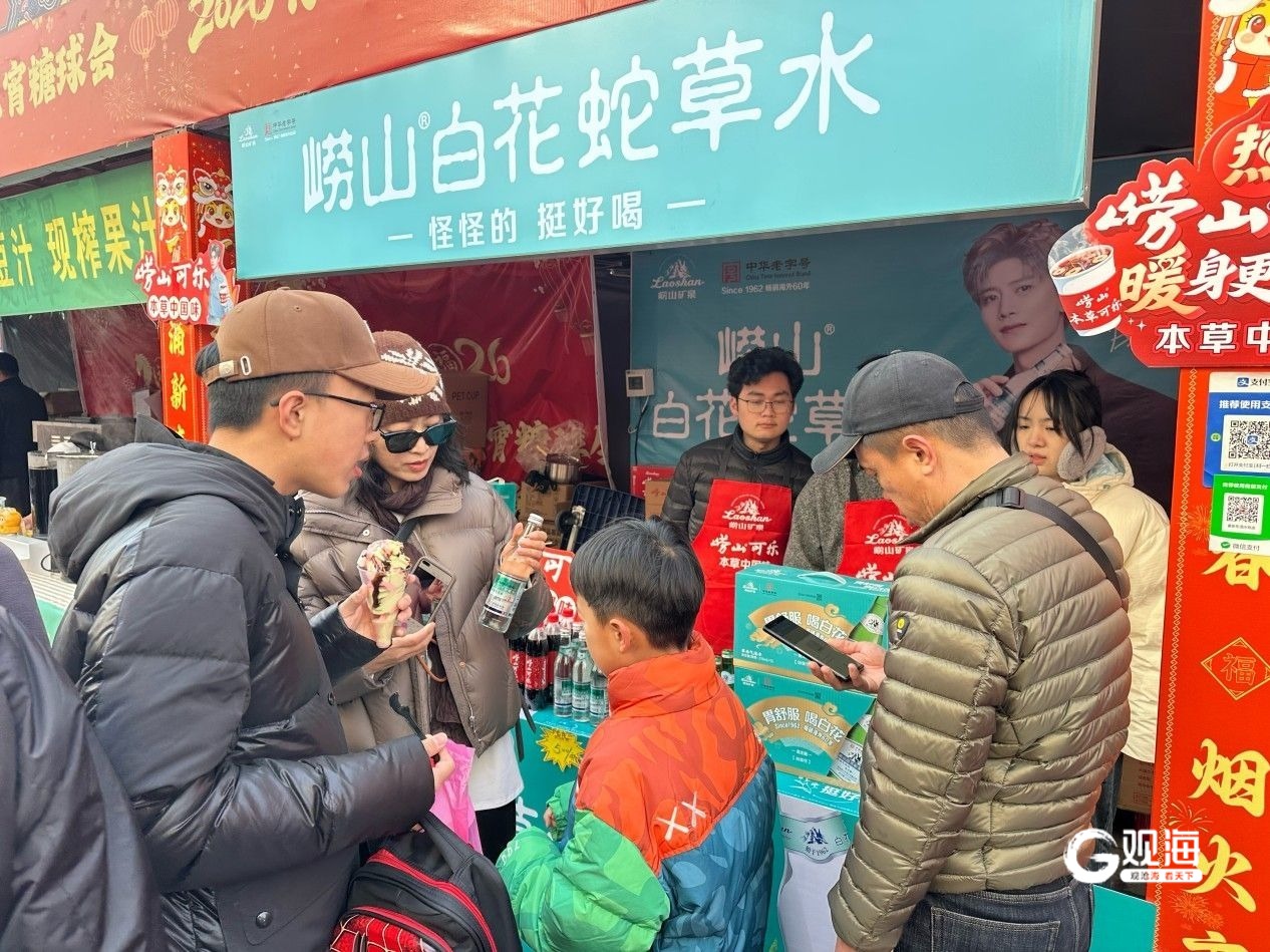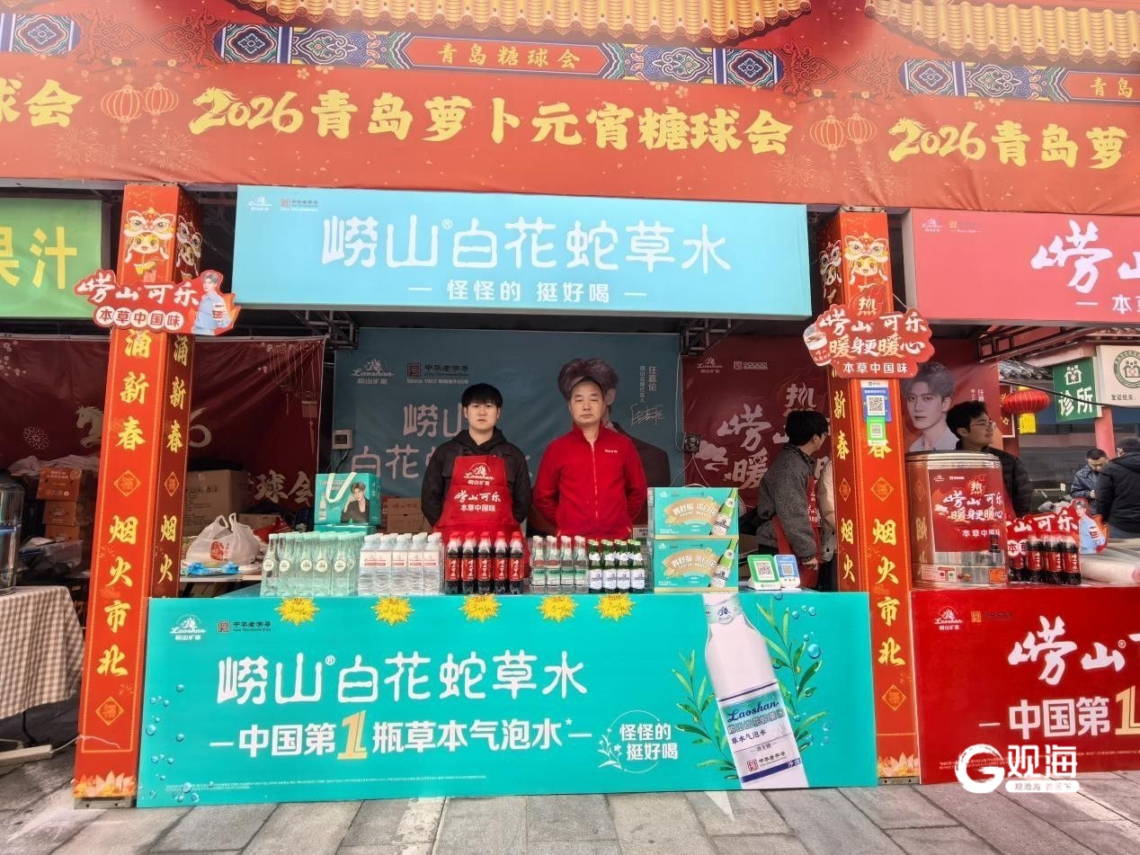 3月1日,备受市民瞩目的2026年青岛萝卜·元宵·糖球会海云庵会场在欢腾的锣鼓声中盛大开启。崂山品牌旗下崂山矿泉水、崂山可乐、崂山白花蛇草水组成的“崂山三绝”联袂亮相,不仅带来了经典与潮流的碰撞,更推出了极具创意的“崂山热可乐”,迅速成为全场焦点,现场销售异常火爆。