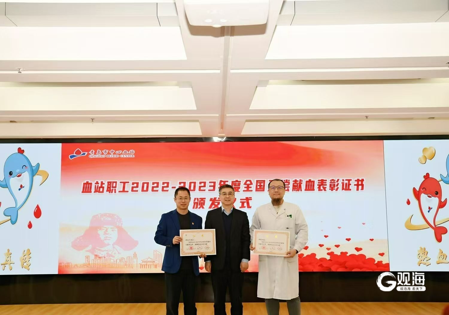 青岛日报社/观海新闻3月3日讯 日前,青岛市中心血站为刚刚获得全国无偿献血奉献奖的27位血站干部职工颁发荣誉证书。截至目前,市中心血站共有54人获得过全国无偿献血奉献奖,其中终身荣誉奖3人、金奖13人、银奖14人、铜奖24人。