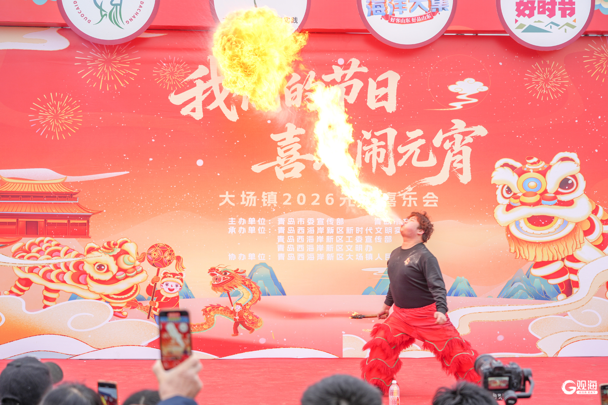 青岛日报/观海新闻3月4日讯 3日,由青岛市委宣传部、青岛市文明办主办,青岛西海岸新区新时代文明实践中心、青岛西海岸新区工委宣传部、青岛西海岸新区文明办承办,青岛西海岸新区大场镇人民政府、青岛西海岸新区大场镇新时代文明实践所协办的“我们的节日·喜乐闹元宵”主题活动精彩启幕。现场,通过民俗展演、手作体验、灯谜竞猜等多元形式,让广大群众在沉浸式互动中感受浓浓的节日温情与文化魅力,绘就了一幅喜庆祥和、邻里和睦的新春生动画卷。