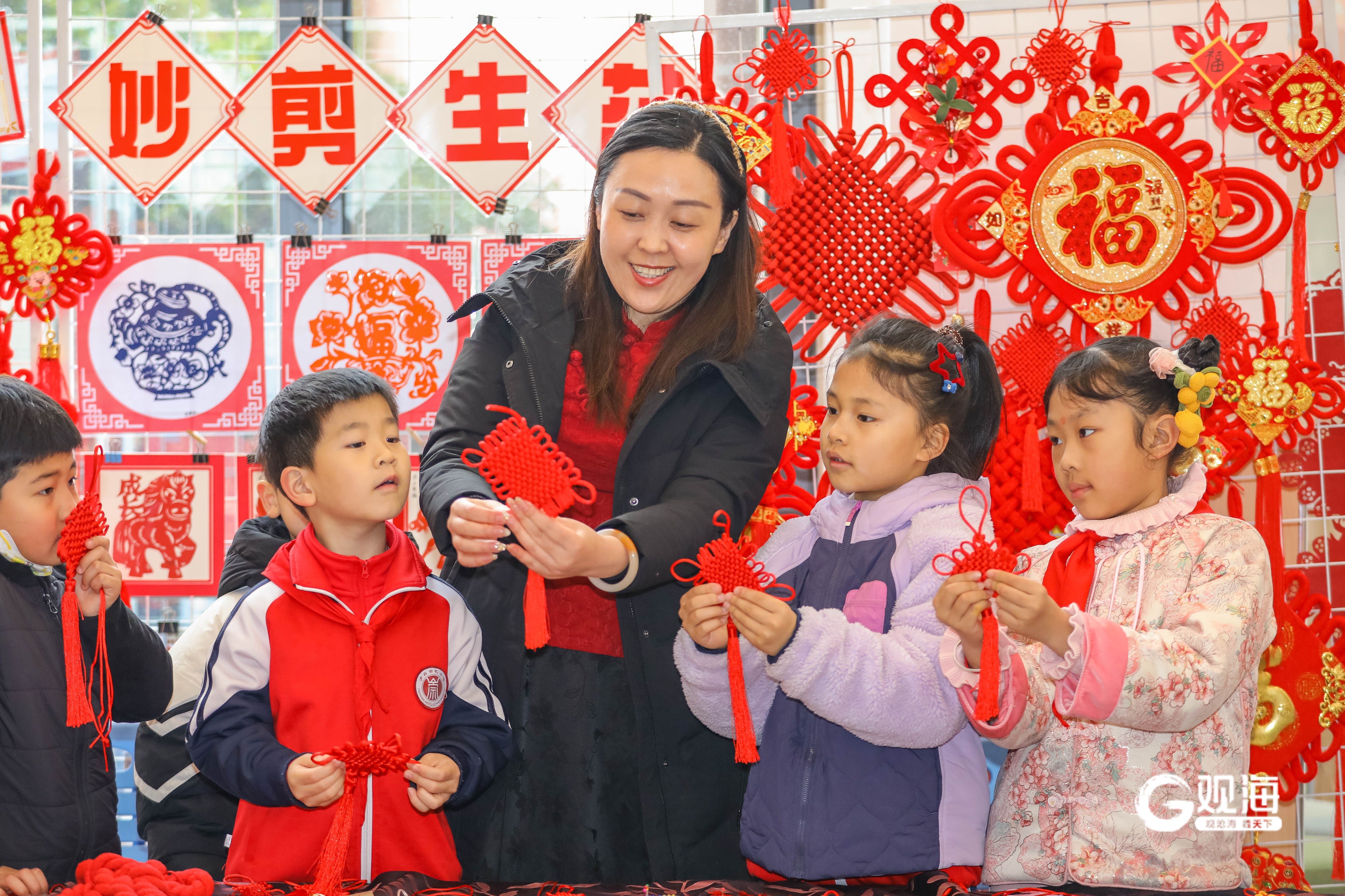 体验编织中国结。