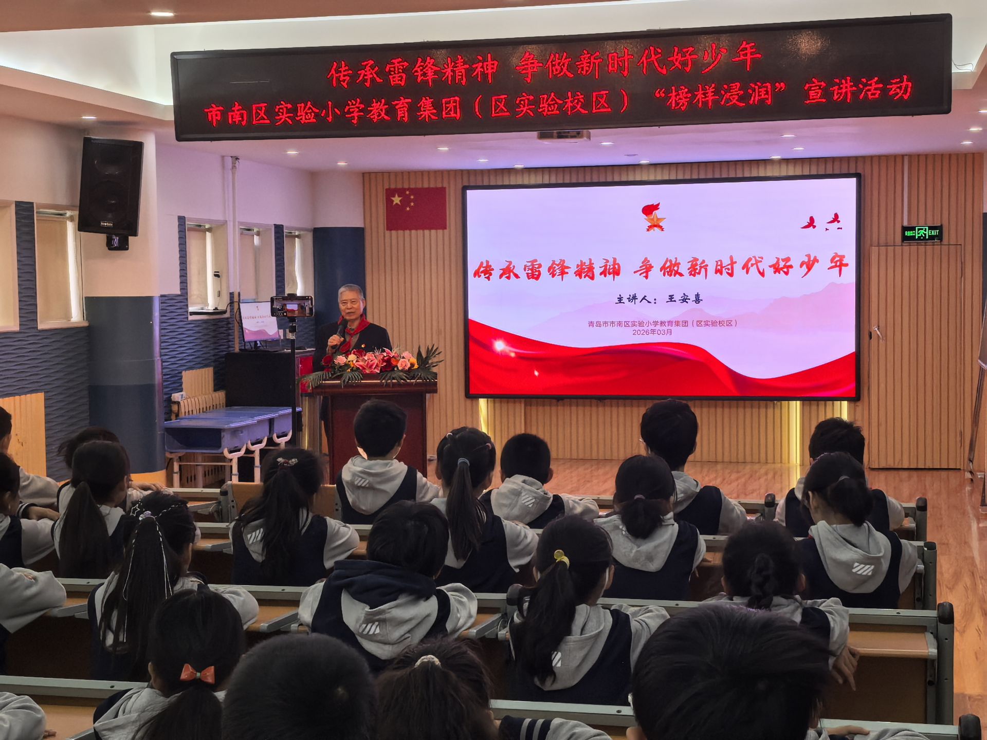王安喜走进市南区实验小学教育集团(区实验校区),开展“榜样浸润”思政宣讲。