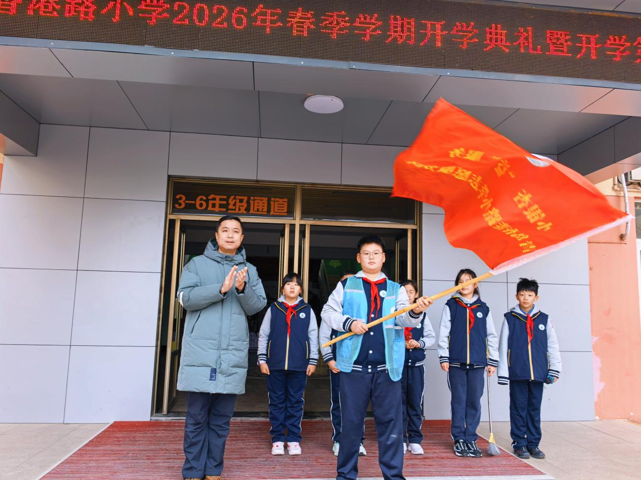青岛香港路小学则以一场兼具仪式感与教育意义的开学典礼,拉开了新学期的帷幕。全体师生齐聚校园共同参与这场“以爱润心,以益童行,以榜样为灯”的沉浸式成长课堂,在庄重与温情中开启新学期。在市南区大思政一体化建设的引领下,学校成立了“小银杏 ‘益’服务”志愿服务队并授旗。青岛市少先队校外辅导员、青岛市青年志愿服务协会副会长张旭为队员们带来雷锋精神主题宣讲,他用朴实而有力的语言,深刻诠释了雷锋精神的时代内涵,让雷锋精神不再只是书本上的文字,而是可感可学、可践可行的行动指南,引导全体师生以雷锋为榜样,争做新时代雷锋式好少年、好老师。