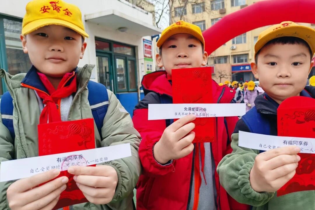 青岛西海岸新区崇明岛路小学为学生送上承载着祝福与期许的新年专属红包。
