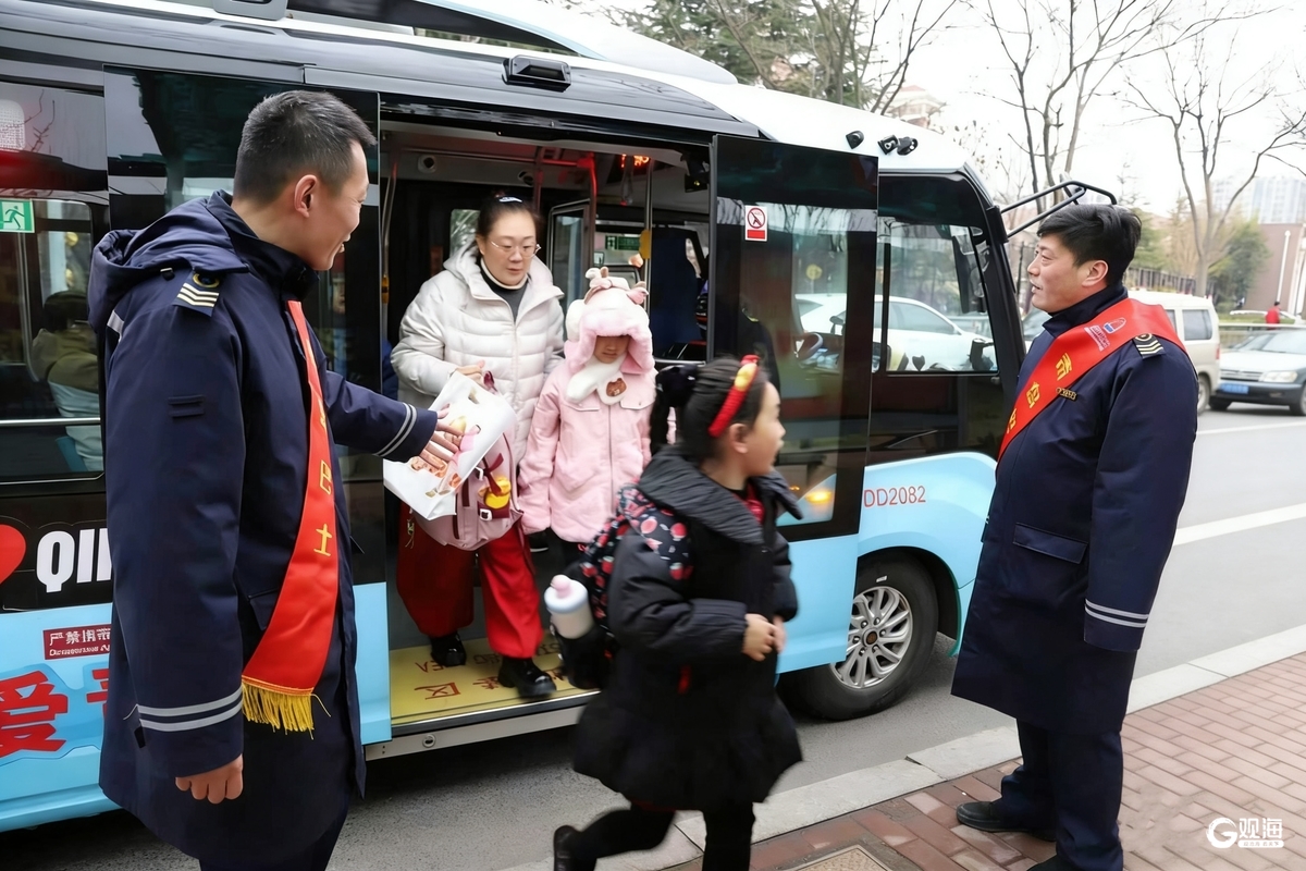 “同学,慢点上车,注意脚下台阶!”“家长您好,请不要在站台长时间停留,车辆即停即走,避免拥堵哦!”在青岛博文小学、立新小学等重点站点,志愿者们身着红色马甲、佩戴服务绶带,分工明确、有条不紊地开展服务工作。针对低年级学生自理能力较弱的特点,志愿者们主动上前提供帮助,帮孩子们提书包、扶下车,耐心指引他们过马路、找到校园入口,用细致的服务化解家长的担忧。