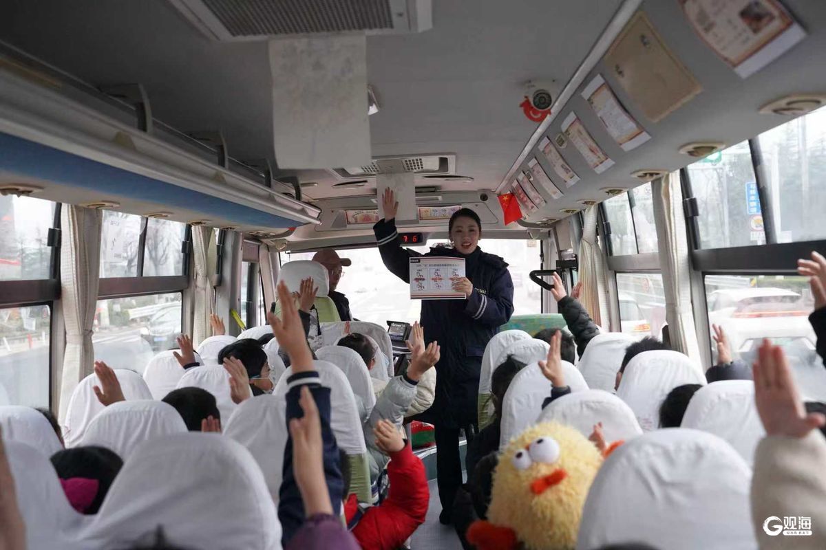 在城阳分公司古镇小学10号线的校车上,随车照管员吕梦婷以“马年话奋进”为主题,组织学生分享新学期目标,鼓励大家像骏马一样勇往直前、奋力拼搏。“我要像小马驹一样,在新学期跑出加速度!”五年级二班王靖伊兴奋地说道。在高新区分公司文典路小学7号校车上,随车照管员袁苗珈则通过讲述“千里马”的故事,激励学生树立远大理想,脚踏实地、逐梦前行。