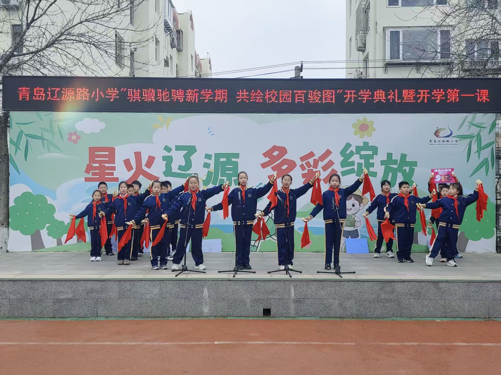 青岛日报社/观海新闻3月5日讯 5日,青岛辽源路小学以“骐骥驰骋新学期 共绘校园百骏图”为主题,举行了新学期的开学典礼,全体师生在浓浓的马年氛围中,共同开启充满希望的新征程。